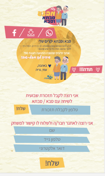 החניך לקבל תזכורת בכל ערב שבת לקבל הודעת SMS לתזכורת להתקשר וליצור קשר עם סבא וסבתא.