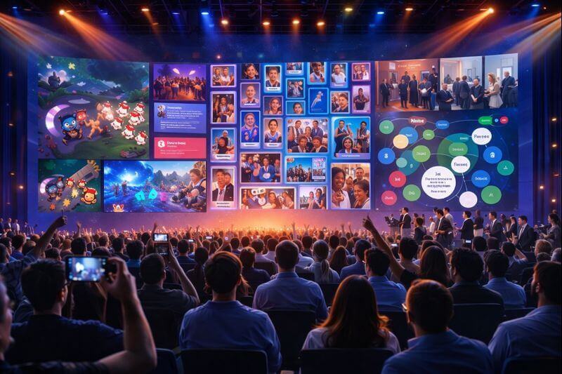 קיר שיתופי אינטראקטיבי. שמשלב תוכן גולשים עם יכולות AI. ויוצר מוקד עניין מרכזי באירוע. המשתתפים מעלים תגובות, תמונות או מסרים. ורואים אותם מופיעים על המסך הגדול בזמן אמת.